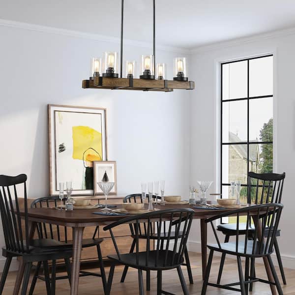 Brown Island Chandelier 6-Light Linear Black Rectangular Farmhouse Chandelier with Classic Seedy Glass