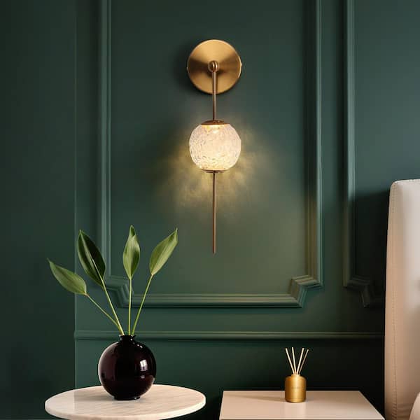 Cenlindes Modern 1-Light Plating Brass Dimmable Wall Sconce with Textured Glass Shade