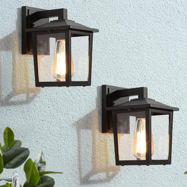 Classic Black Outdoor Lantern Wall Sconce With Clear Glass Shade 1-Light Hardwired Exterior Coach Light (2-pack)