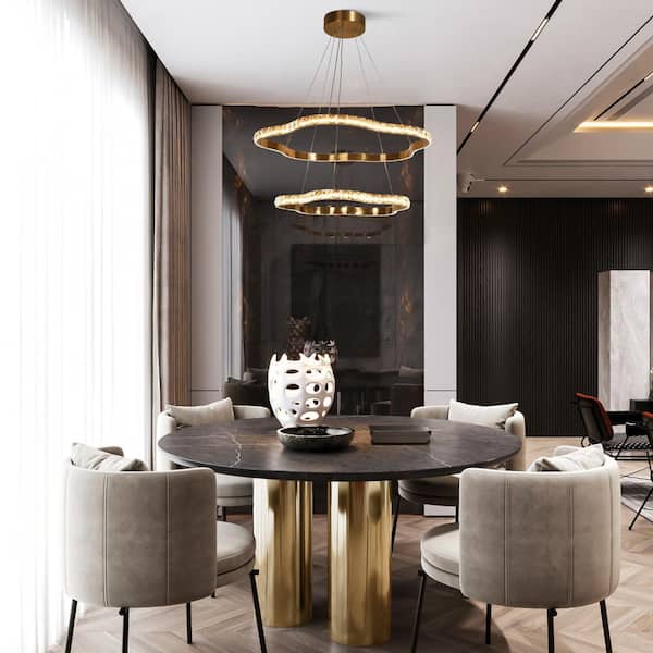 • 2-tier circle chandelier with crystal accents adds modern vibe