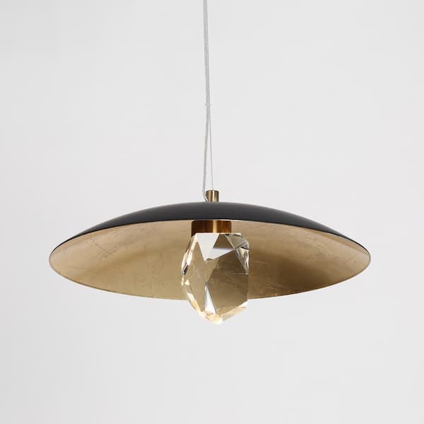 Eleutherius 7-Watt 1-Light Matte Black Integrated LED Bell Crystal Pendant Light Bedroom Kitchen Gold Leaf Hanging Light