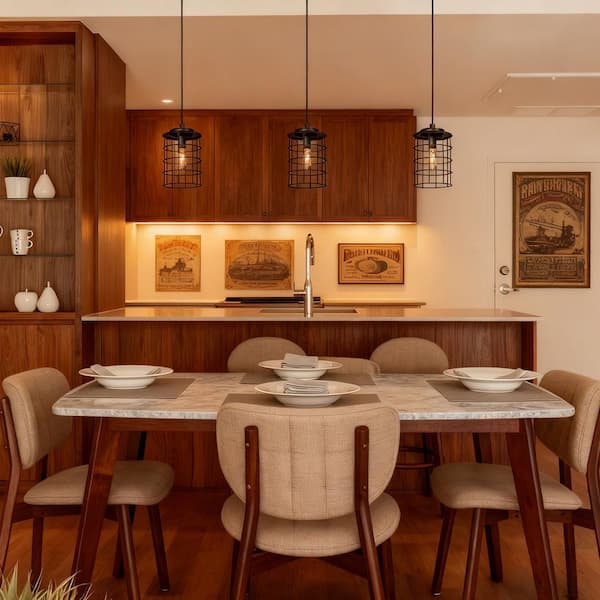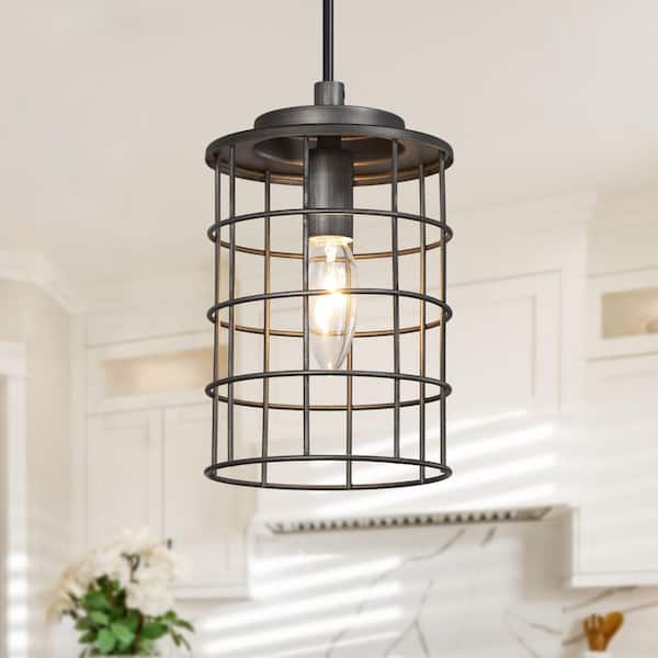 Industrial Gray 1-Light Drum Pendant Light Modern Cage Candlestick Island Pendant Light for Foyer, Hallway, Bedroom
