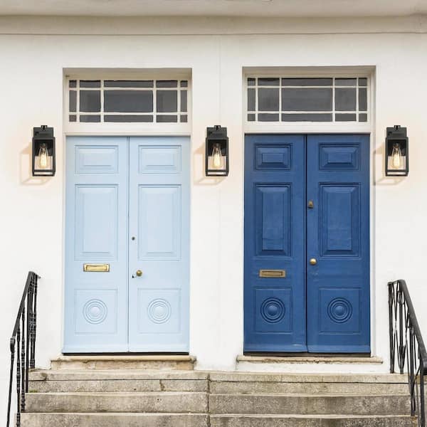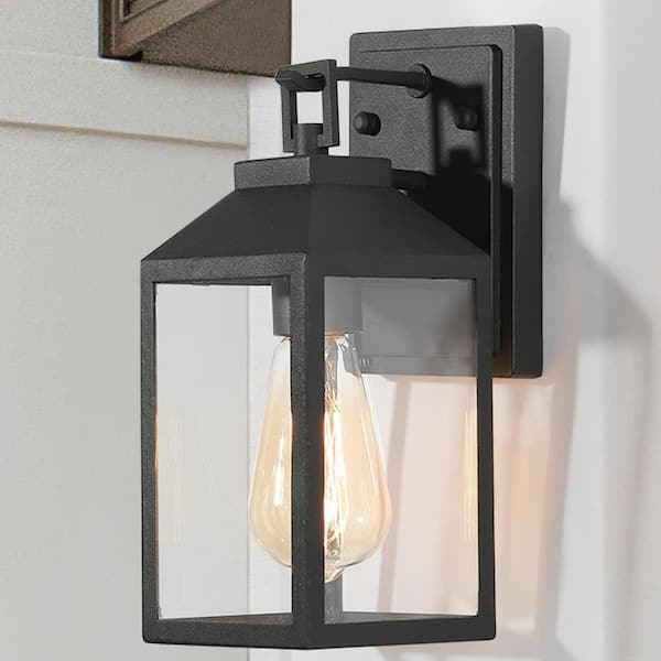 Industrial Textured Black Outdoor Lantern Sconce with Clear Glass Shade, 1-Light Exterior Wall Light for Garage Porch