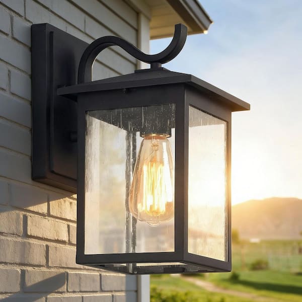 Matte Black Outdoor Sconce for Entryway Porch Patio Gazebo Pergola, 1-Light Rust-Proof Wall Light with Seedy Glass Shade
