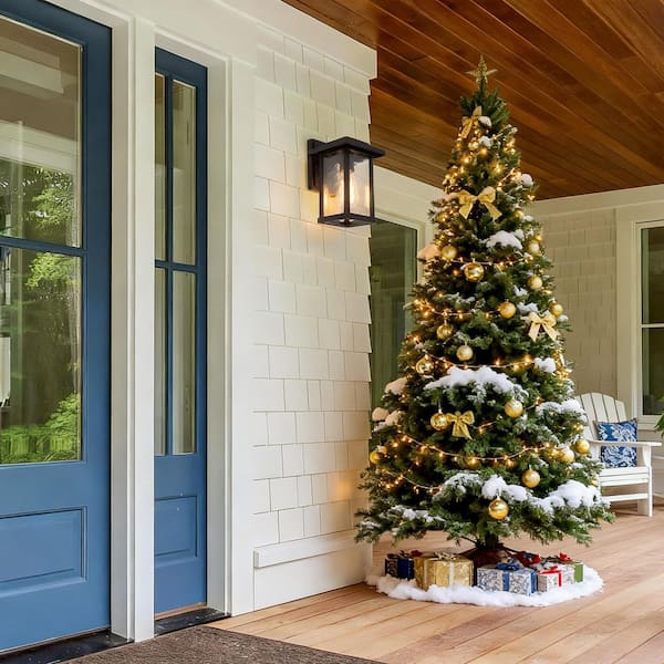 Matte Black Outdoor Wall Lantern Sconce with Textured Glass Shade Modern 1-Light Porch Patio Garden Wall Mounted Light