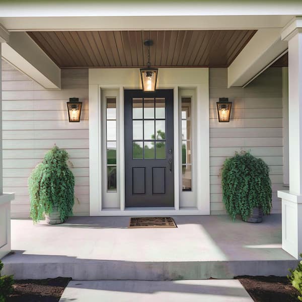 Modern 1-Light Black Gold Outdoor Wall Lantern Sconce with Cylinder Water Wave Glass Shade, Porch Patio Wall Lighting