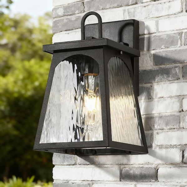Modern 1-Light Rusty Bronze Outdoor Wall Lantern Sconce with Water Wave Arched Window Glass Shade and No Bulbs Included