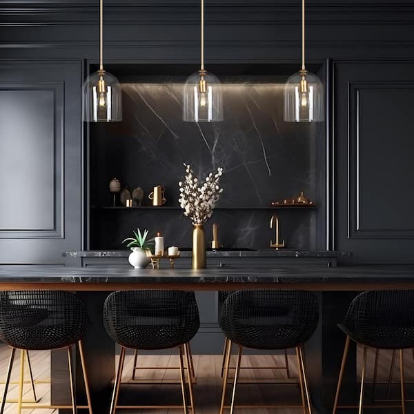 Modern 1-Light Stain Gold Kitchen Island Pendant Light with Bell Clear Glass Shade, Foyer Hanging Light, LED Compatible