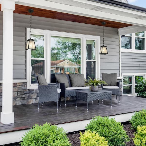 Modern 11.8 in. 1-Light Black Outdoor Ceiling Light Geometric Outdoor Pendant with Seeded Glass Shade For Outdoor Patio