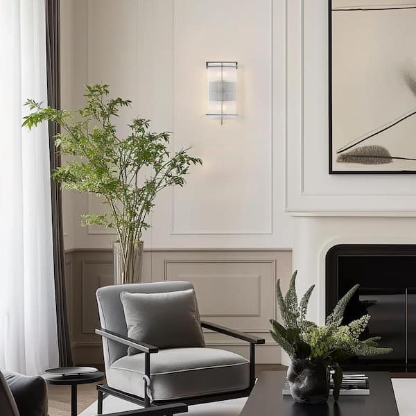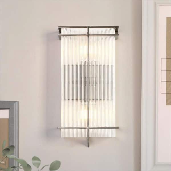 Modern 15.4 in. 2-Light Brushed Gunmetal Plated Vanity Light Ribbed Acrylic Shade Contemporary Bathroom Sconce