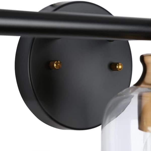 Modern 21.5 in. 3-Light Black Bathroom Vanity Light Plated Brass Bell Powder Room Wall Sconce with Clear Glass Shades