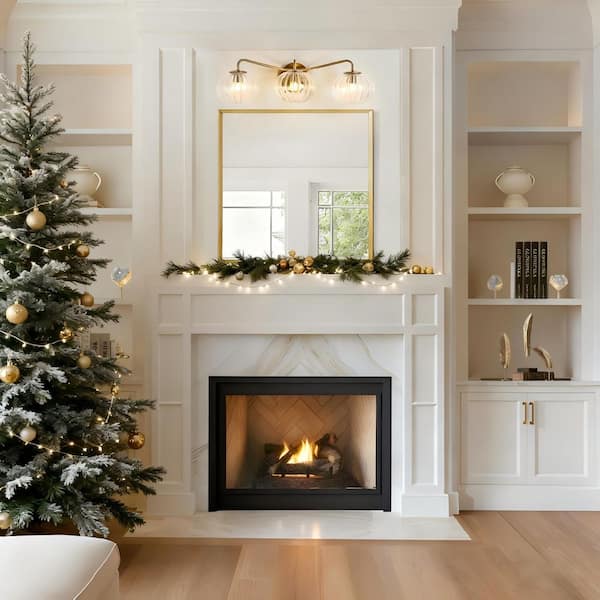 Modern 23.6 in. 3-Light Plated Brass Vanity Light with Pumpkin Clear Glass Shades for Bathroom Vanity and Makeup Mirror