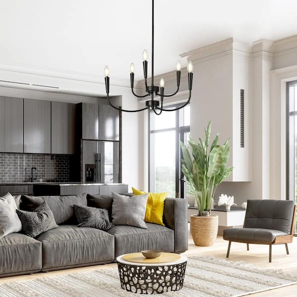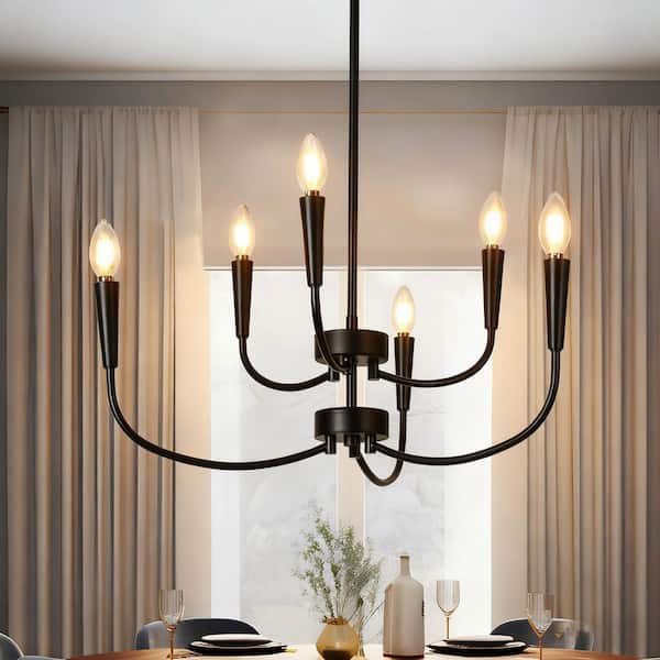 Modern 24 in. 6-Light Black Chandelier Minimalist Ceiling Light for Master Bedroom and Living Room with Candle Design
