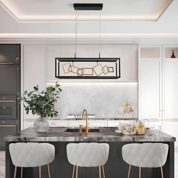 Modern 27.8 in. 8-Light Integrated LED Matte Black and Satin Gold Island Chandelier with Rectangle Cage for Dining Room