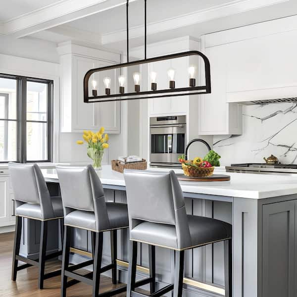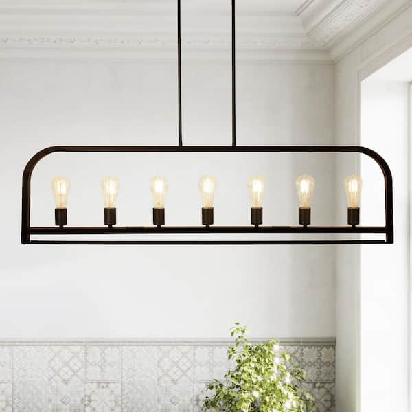 Modern 49.2 in. 7-Light Black Linear Chandelier for Dining Room, Minimalist Large Kitchen Island Pendant, LED Compatible