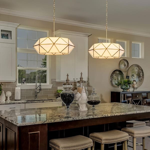 Modern 5-Light Gold and Copper Geometric Chandelier with White Stained Glass Shade for Kitchen Island, No Bulbs Included