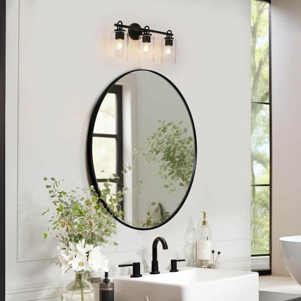 Modern Black Bathroom Vanity Light with Cylinder Clear Glass Shades 22 in. 3-Light Minimalist Powder Room Wall Sconce