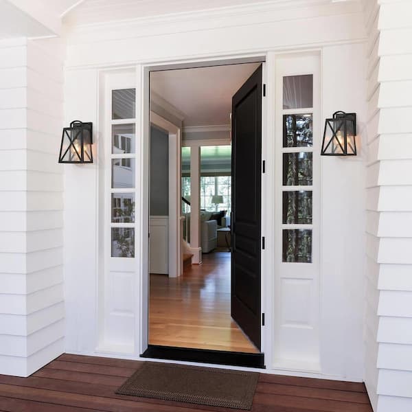 Modern Black Outdoor Wall Lantern Sconce With Clear Glass Shade 1-Light Geometric Coach Light Porch Lighting (2-pack)
