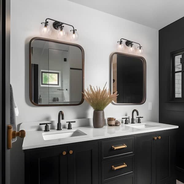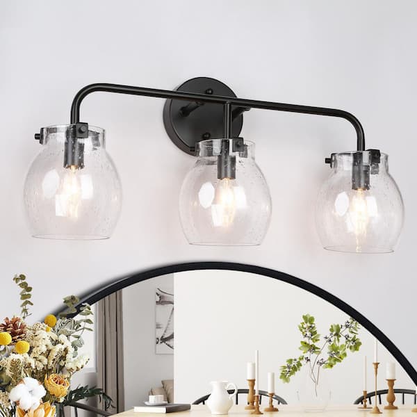 Modern Black Vanity Light 3-Light Linear Classic Bathroom Wall Sconce Mirror Wall Light with Clear Seedy Glass Globes