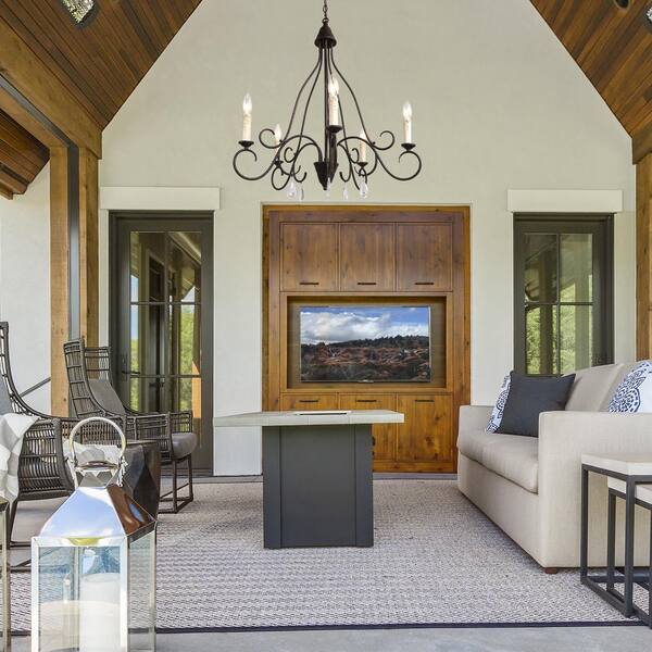 Modern Farmhouse 26 in. Rusted Bronze Candlestick Chandelier Classic 5-Light Island Pendant Light with Crystal Drops