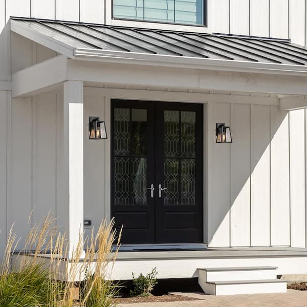 • Geometric black wall light complements any exterior space