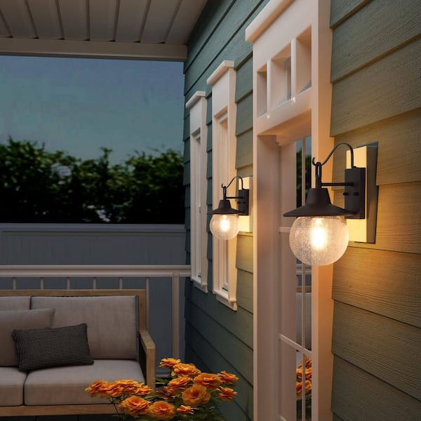 Modern Rusty Black Outdoor Wall Lantern Sconce with Globe Clear Seeded Glass Shade 1-Light Vintage Wall Mount Light