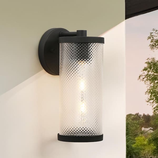 Modern Textured Black Outdoor Wall Sconce 1-Light Contemporary Cylinder Outdoor Wall Light with Textured Glass Shade