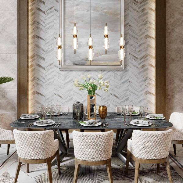 Penstemon 5-Light Dimmable Integrated LED Plating Brass Linear Chandelier with Resin Decorations