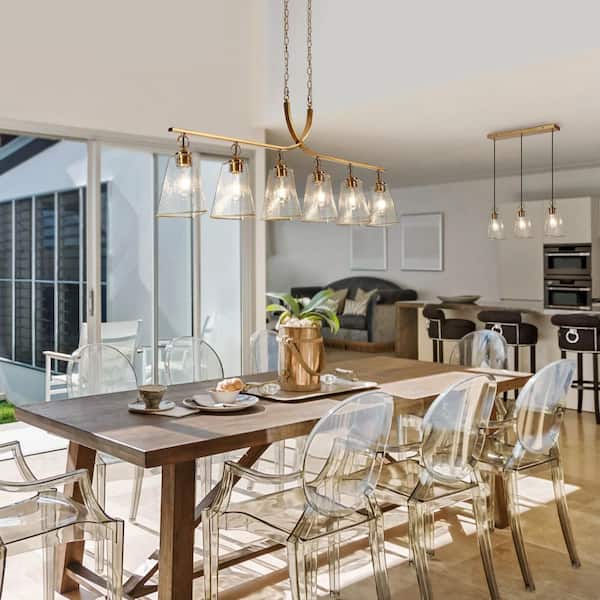 Sduiaor 55.1 in. 6-Light Transitional Brass Linear Chandelier with Textured Glass Shades Large Island Pendant Light