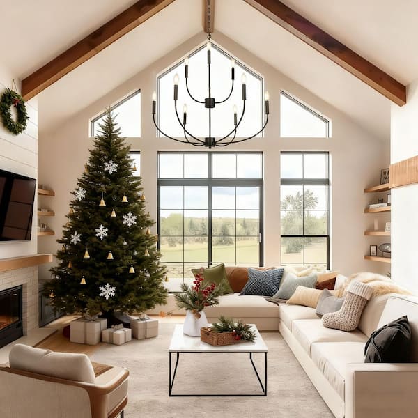Transitional 32.3 in. Large 9-Light Black Candlestick Chandelier for Living Room Dining Room Pendant, LED Compatible