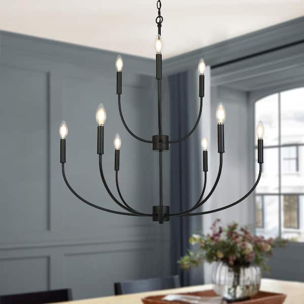 Transitional 32.3 in. Large 9-Light Black Candlestick Chandelier for Living Room Dining Room Pendant, LED Compatible