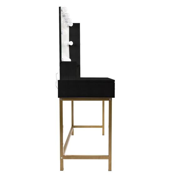 Adeline 2-Piece Ebony Makeup Vanity Set with Stool and LED Mirror