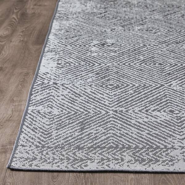 Breyleigh Carzon Cream/Gray 2 ft. x 6 ft. 7 in. Geometric Polypropylene Indoor/Outdoor Area Rug