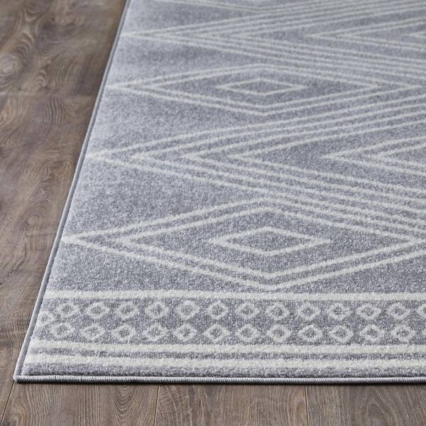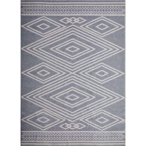 Kissandrah Bayrend Gray 9 ft. 10 in. x 12 ft. 10 in. Geometric Polypropylene Area Rug