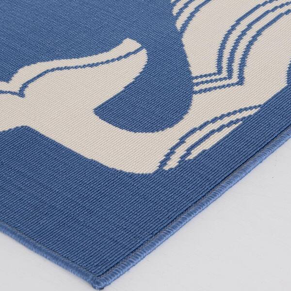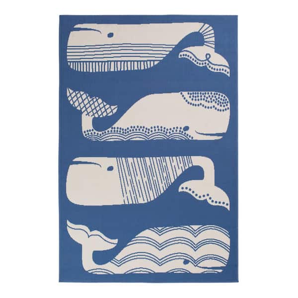 Patterned Whales Blue/Cream 5 ft. x 7 ft. 3 in. Nautical Polypropylene Indoor/Outdoor Area Rug