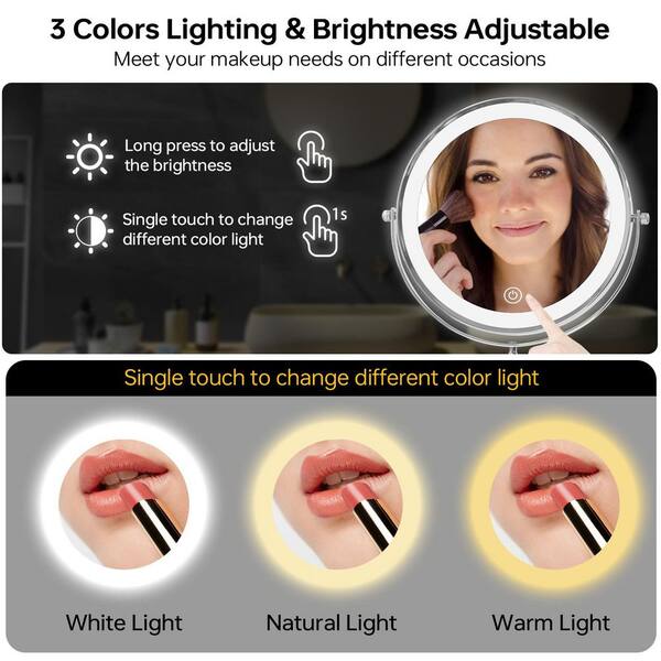 12 in. W x 16.8 in. H L Metal Chrome Rechargeable Wall Mounted Lighted Makeup Vanity Mirror Adjustable Extending 10x
