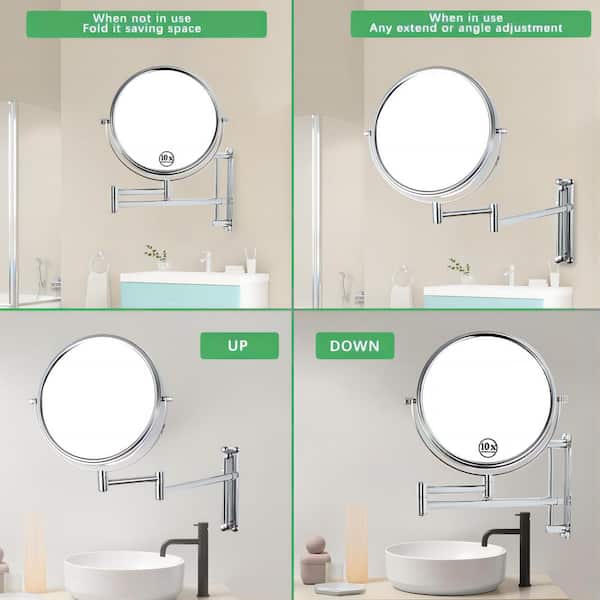 13 in. W x 16.5 in. H L Metal Chrome Makeup Mirror Wall Mounted 10x Magnifying Mirror Adjustable Extending Vanity Mirror
