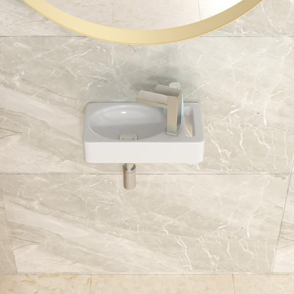 15 in. Wall Mount Hung Rectangle Vessel Sink Ceramic White Bathroom Sink