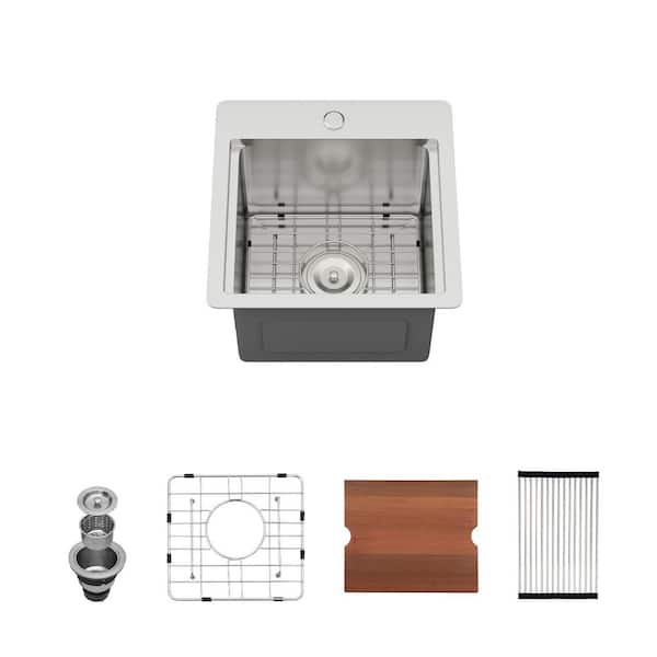 15x15 in. Square Drop-In/Undermount Single Bowl 18 Gauge Stainless Steel Kitchen/Bar Sink with Bottom Grids