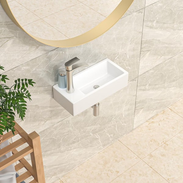 18 in. x 10 in. Ceramic Rectangular Vessel Sink Wall Mount Bathroom Sink in White