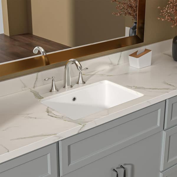 20 in. Undermount Rectangle Porcelain Vanity Bathroom Sink in White Creamic with Overflow