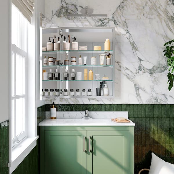 24 in. W x 30 in. H Right Swing Rectangular Aluminum Medicine Cabinet with Mirror