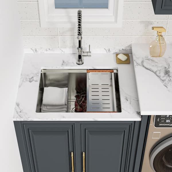 24 in. x 18 in. Undermount Single Bowl 16-Gauge Stainless Steel Workstation Laundry/Utility Sink with Strainer