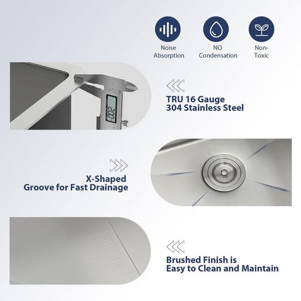 27 in.Single Bowl 16-Gague T304 Stainless Steel Undermount Kitchen Sink with Bottom Grid and Strainer Basket