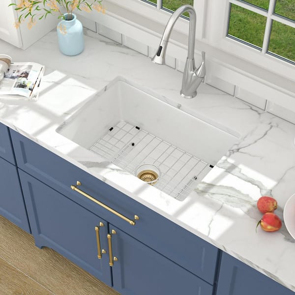 27 in. W x 19 in. D Undermount Single Bowl Ceramic Kitchen Sink with Bottom Grid