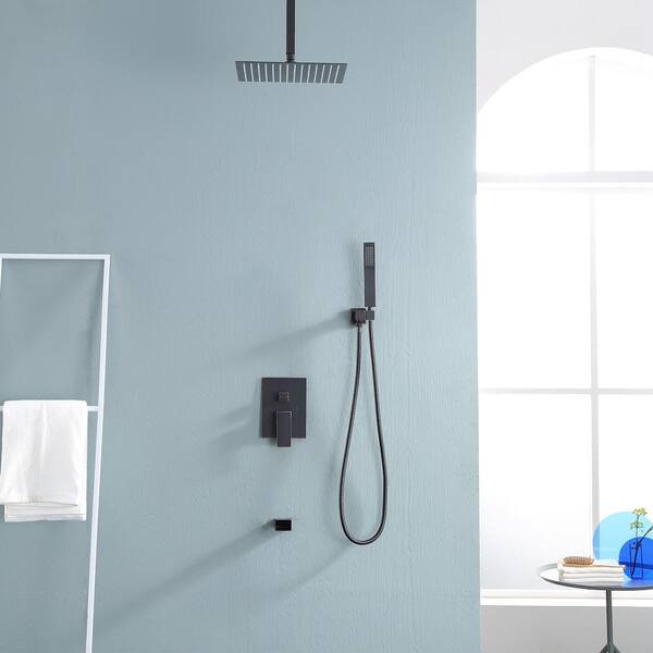 3-Spray Dual 16 in. Ceiling Mount Fixed and Handheld Shower Head 1.8 GPM Shower Set with Tub Faucet in Oil Rubbed Bronze