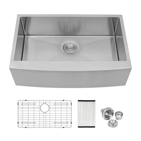 30 in. Farmhouse Single Bowl 16-Gauge Stainless Steel Apron-Front Kitchen Sink with Bottom Grid