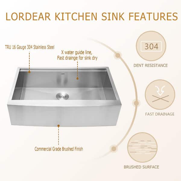 30 in Framhouse/Apron-Front Single Bowl 16 Gauge Stainless Steel Workstation Kitchen Sink with Sliding Accessories