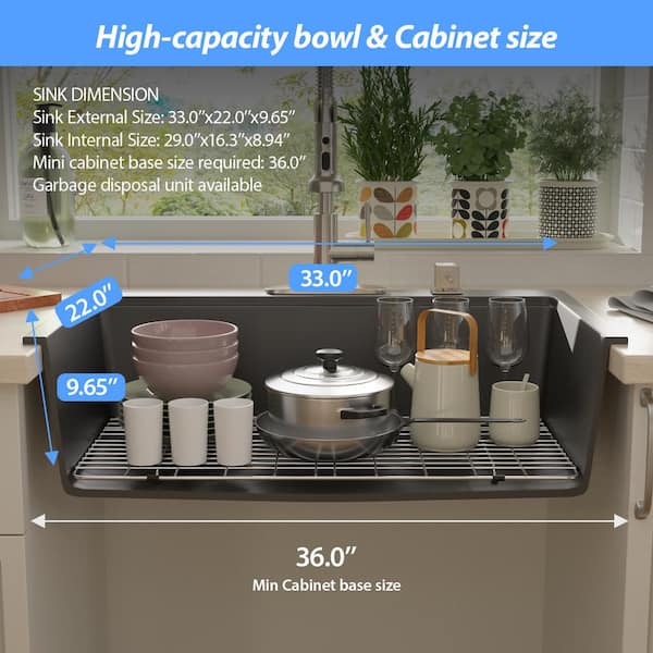 33 in. Drop-In Single Bowl Matte Black Granite Composite Kitchen Sink with Bottom Grids and Strainer