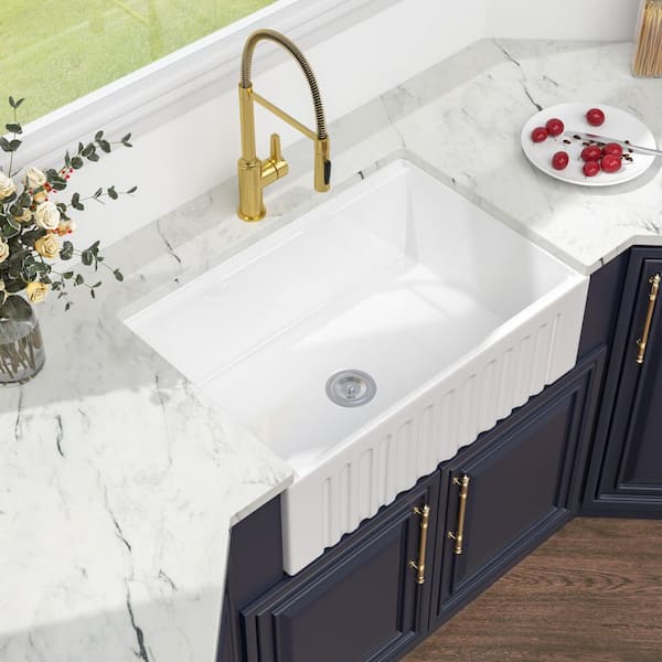 33 in.W x 20 in.D Farmhouse Ceramic White Single Bowl Apron Front Workstation Kitchen Sink with Bottom Grids